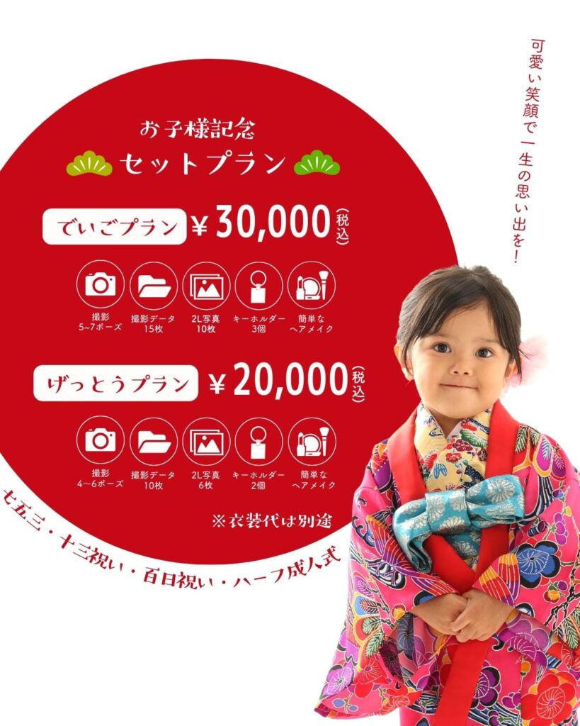 百日祝い・七五三・十三祝い・ハーフ成人式などの